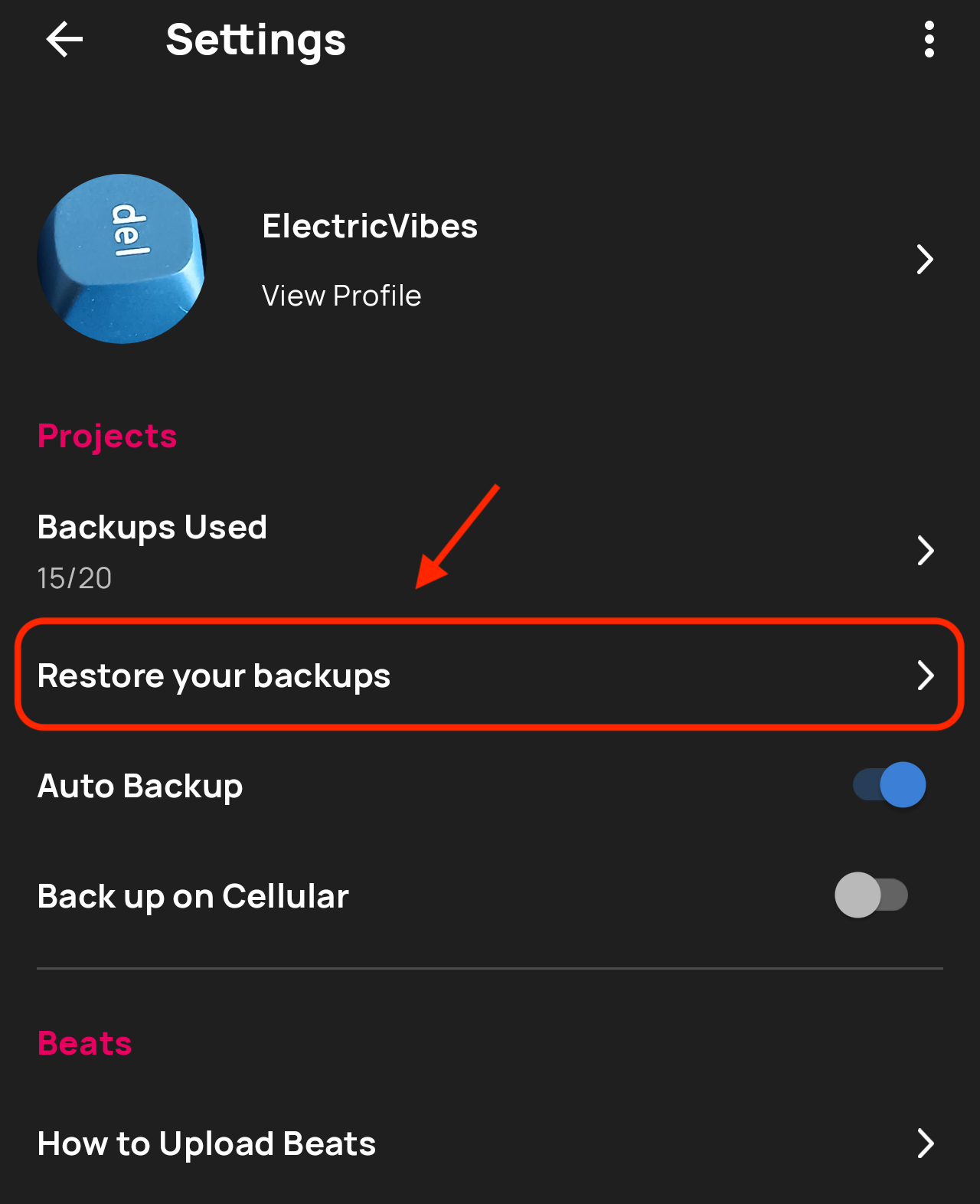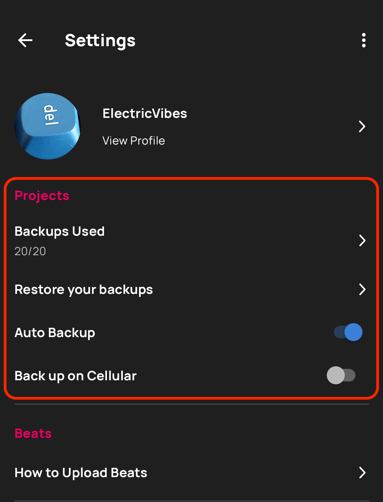 - Enable Auto Backup: Go to Settings > Projects and confirm Auto Backup is turned on (it's on by default)